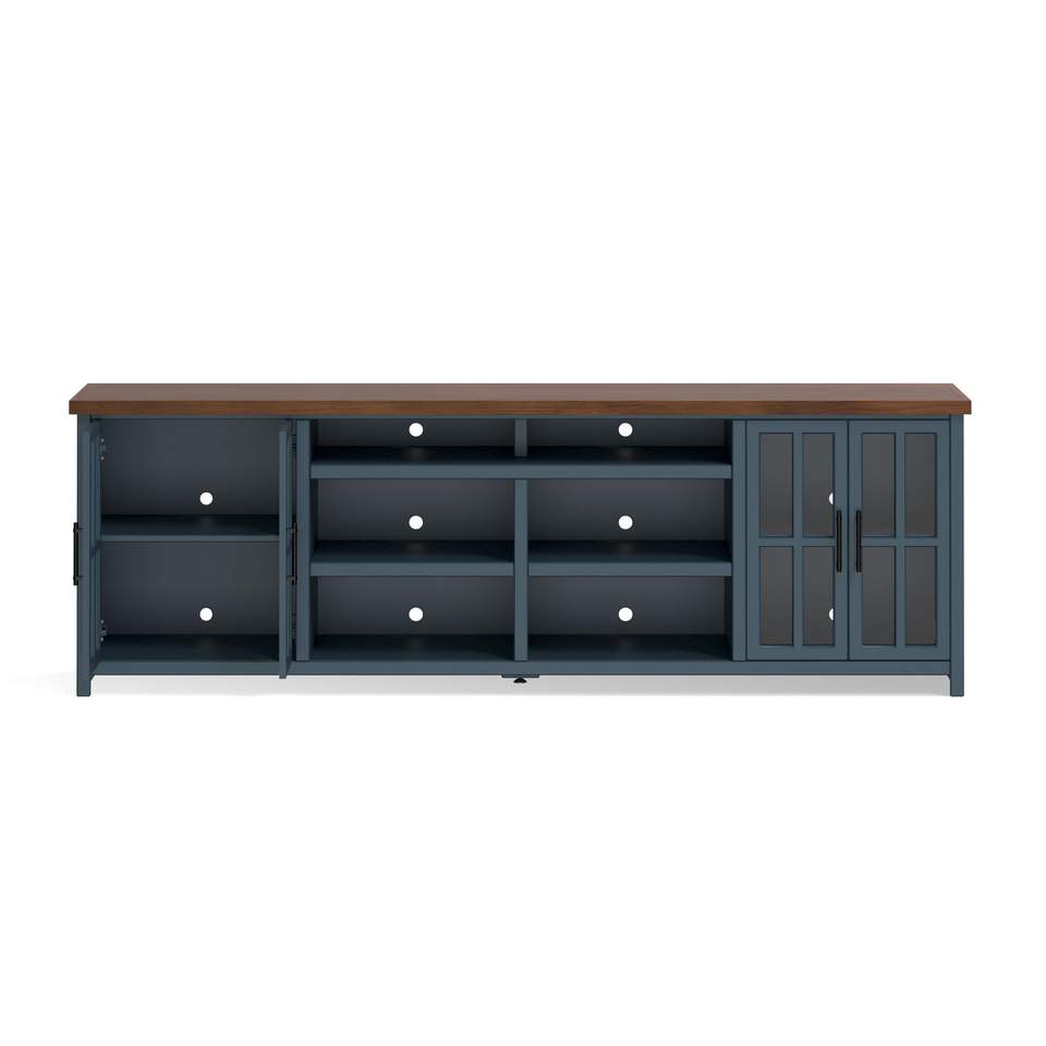 Bridgevine Home Nantucket 96-Inch TV Stand Console Blue Denim Whiskey Finish No Assembly Required for TVs up to 100-Inches