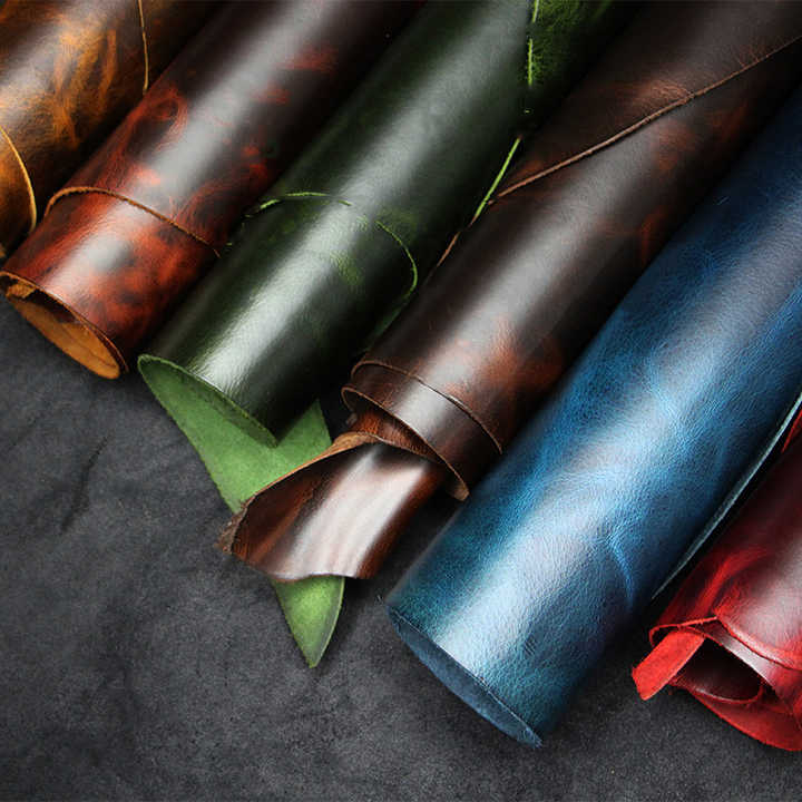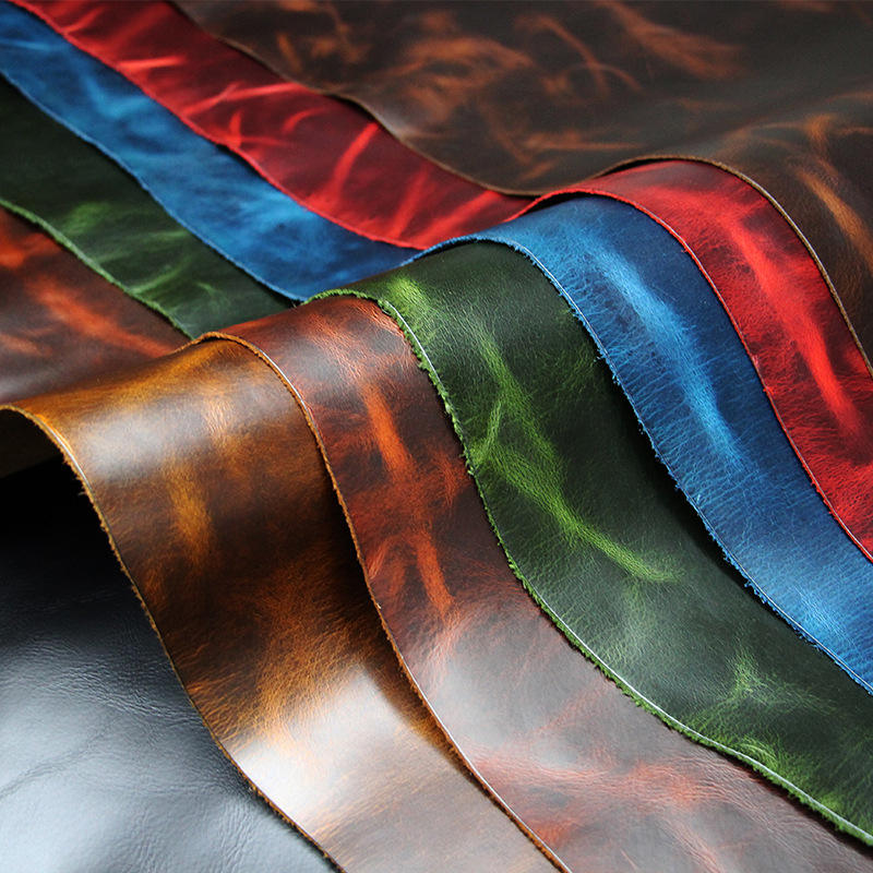 Bright Oil Wax Cowhide Top Layer Sofa Leather 2.0mm Retro Color-changing Crazy Horse Leather Fabric Upholstery Material