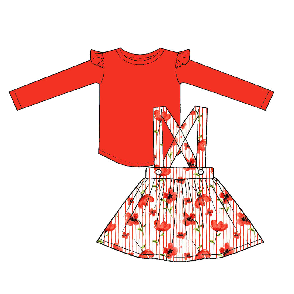 Set di Due Pezzi con Abito Stampato Rosso Brillante e Vivace, Abbigliamento per Bambine all'Ingrosso, Vestiti e Completi per Ragazze