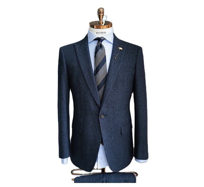 Abito da sposa in Tweed retrò britannico in tre pezzi abito da sartoria in lana a spina di pesce aderente stile blu scuro