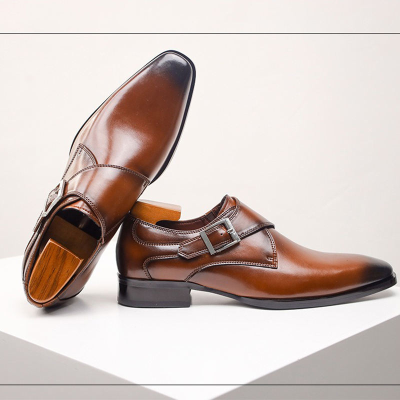 British Style Mens Oxfords Dress Shoes Upper Material Other Elastic Band Square Toe Classic Monk Straps Formal Office Wear