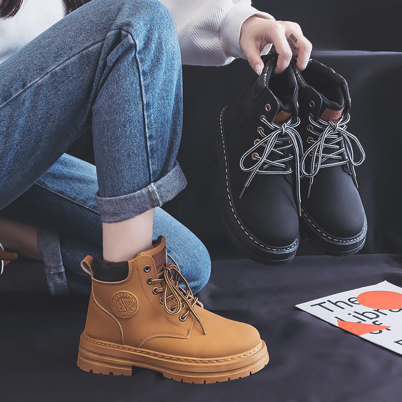 Scarpe da moto con suola spessa in stile britannico e grandi stivali gialli versatili per l'estate e l'autunno con punta chiusa traspirante