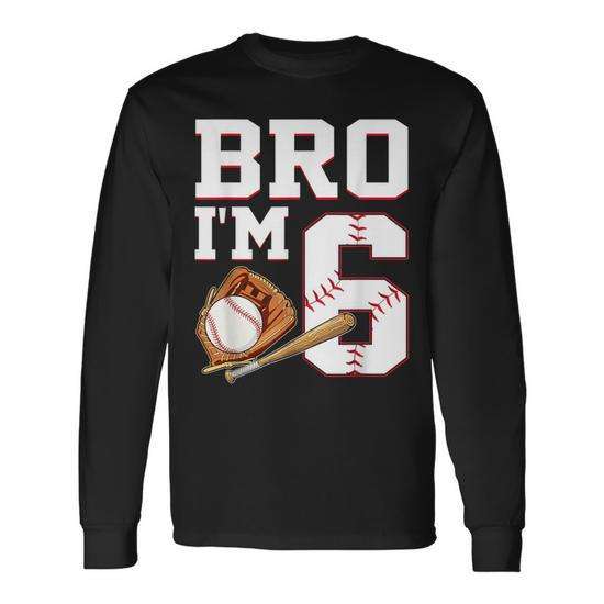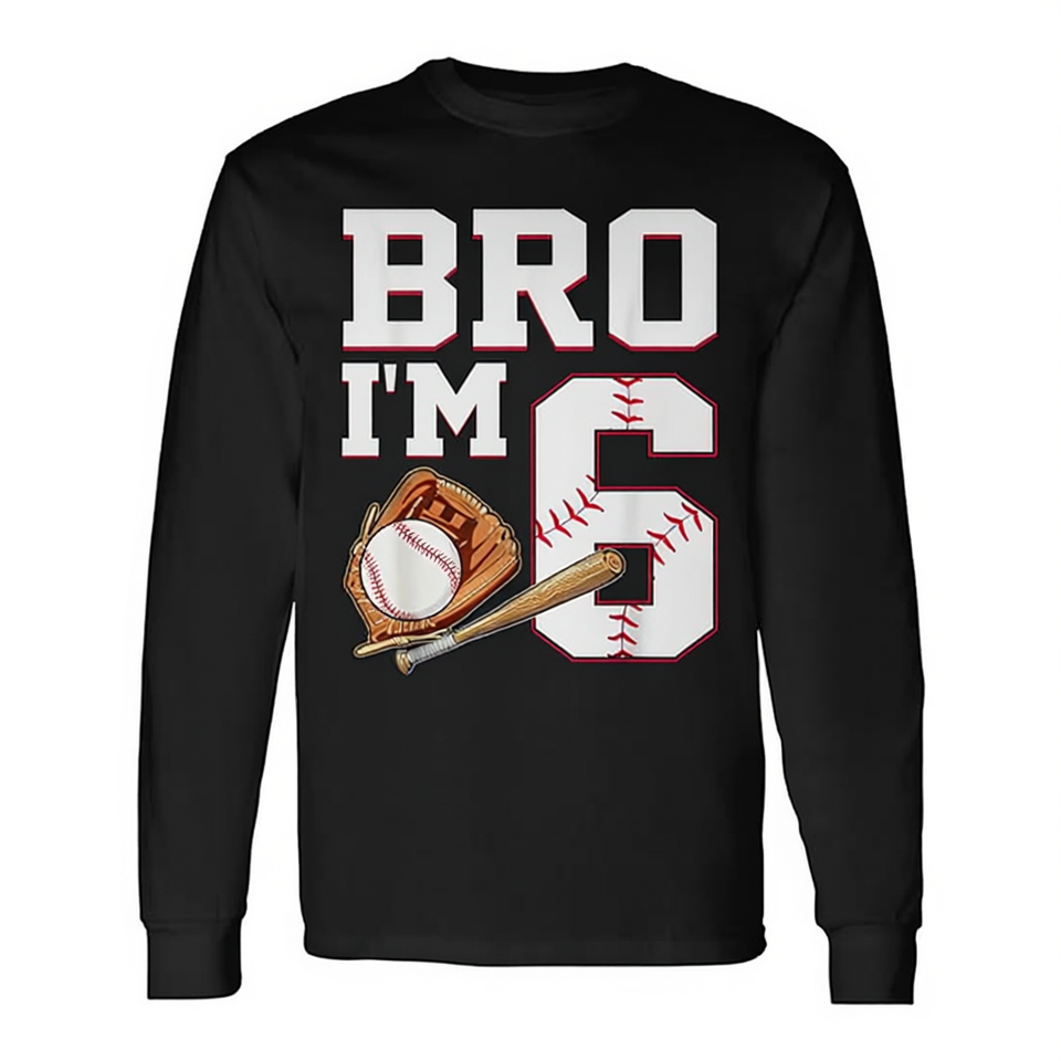 Maglietta da compleanno a maniche lunghe per bambini di 6 anni, con scritta 'Bro, ho 6 anni', ideale per feste.