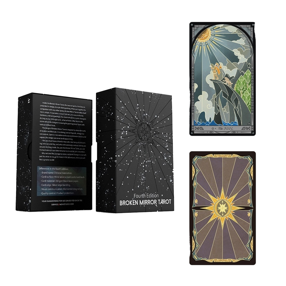 Specchio rotto tarocchi quarta edizione, carta stile dipinto in vetro chiesa, bordo argento Laser