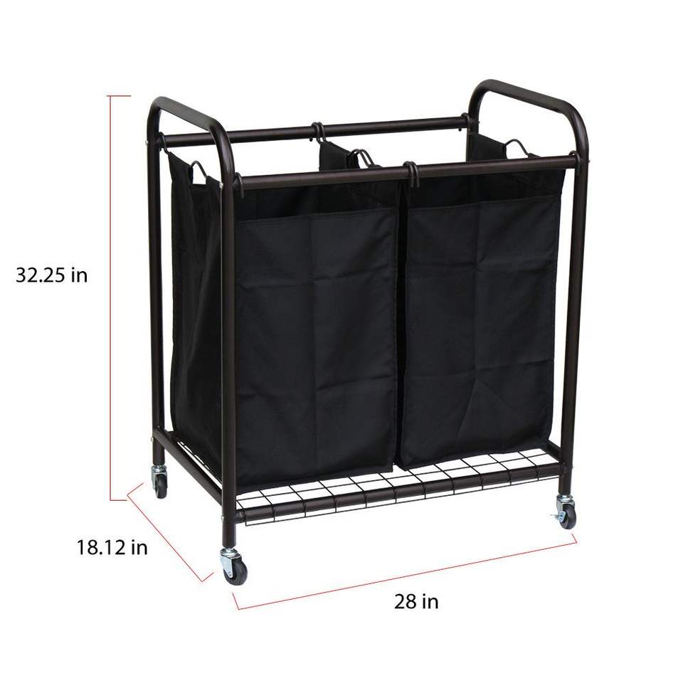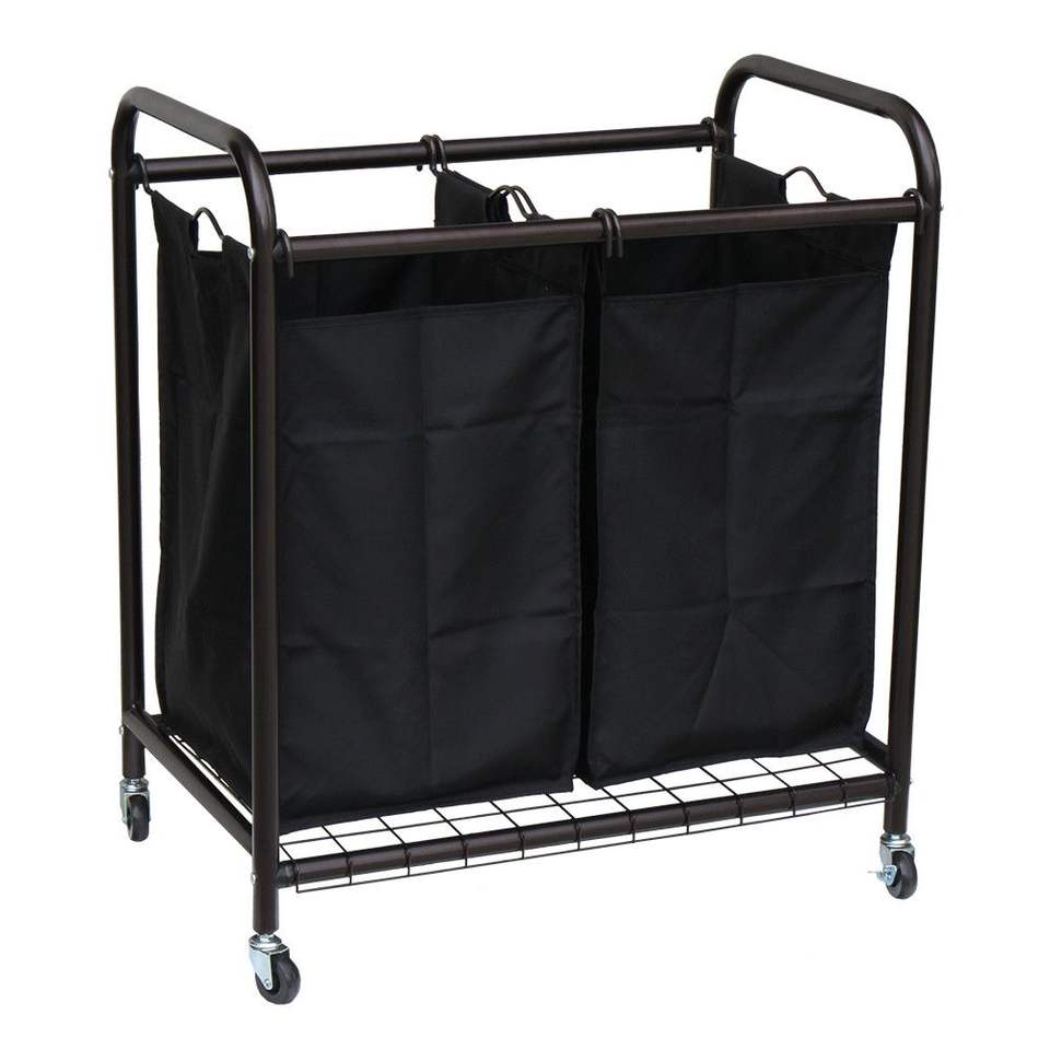 Cesto Portabiancheria in Bronzo con 2 Scomparti e Ruote, Pratico Contenitore per Organizzare i Vestiti