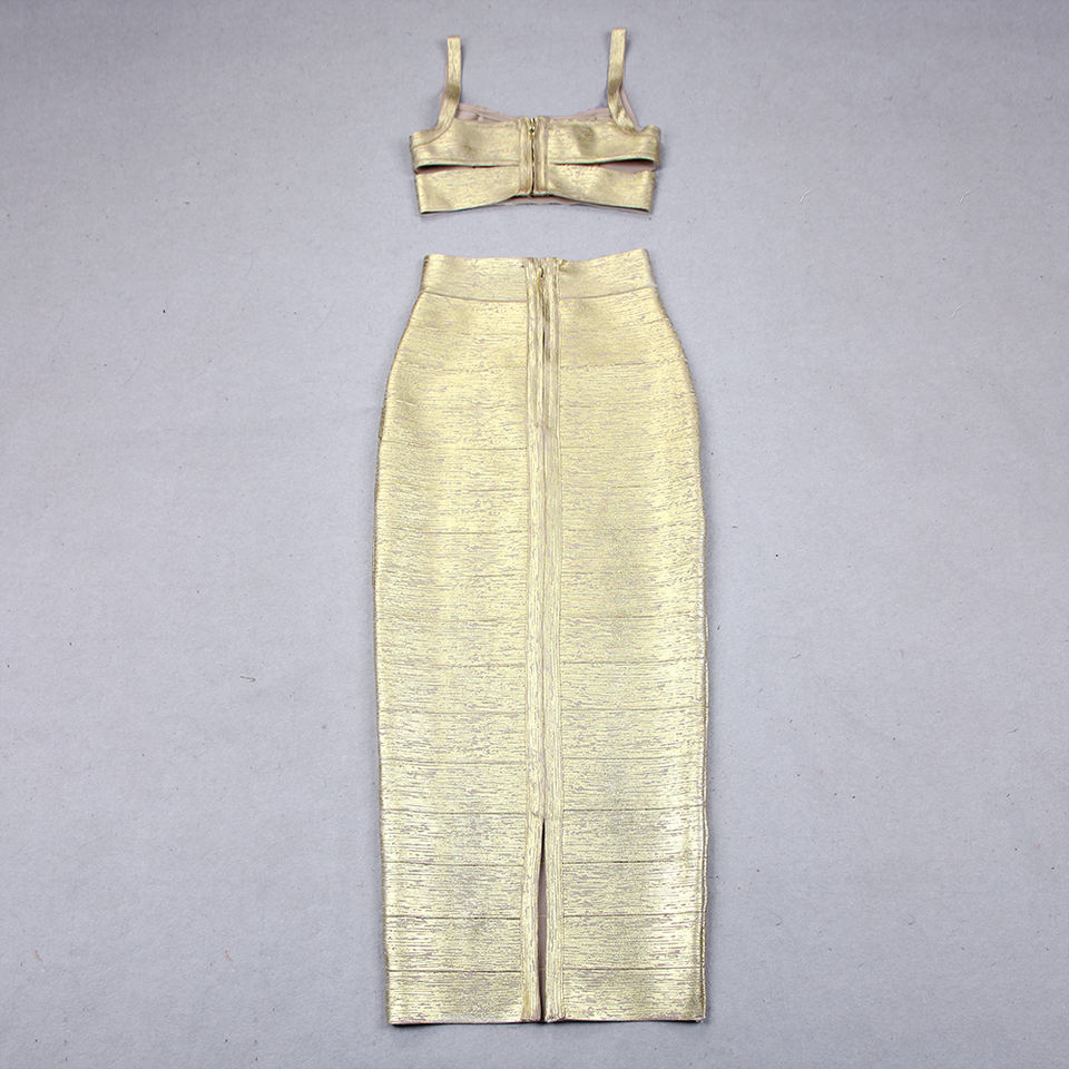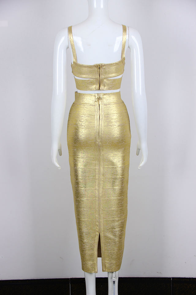 Bronzing Cut-out Vest Top Bandage Skirt 2 Piece Set Women Spring Summer 2023