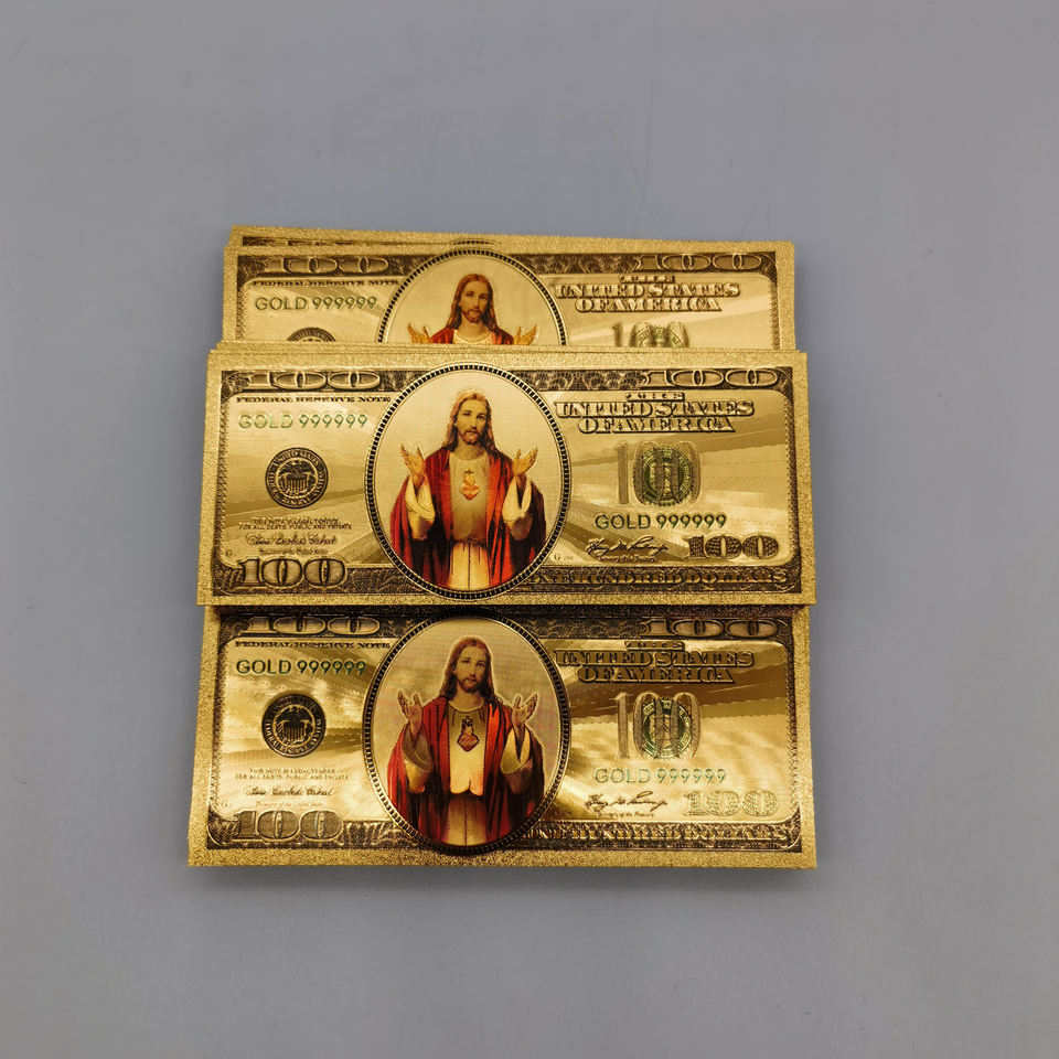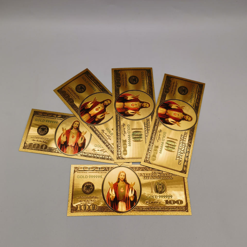 Bronzing One Hundred Dollars Jesus Custom Colorful Jesus 100 American Money Dollars Gold Foil Banknote for Collection