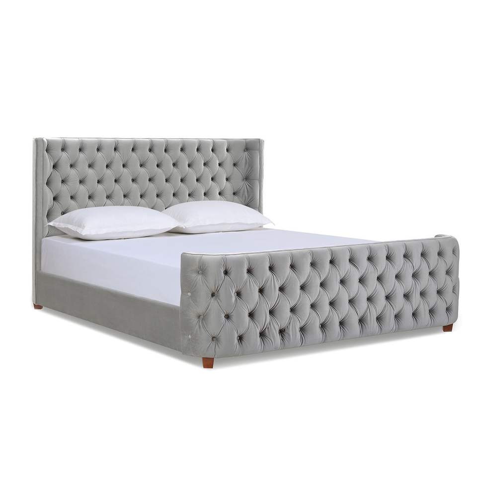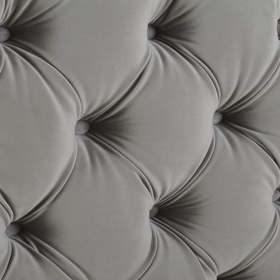 Set Letto Imbottito in Velluto Grigio Opale Brooklyn, Misura King con Testiera e Pediera Rivestite