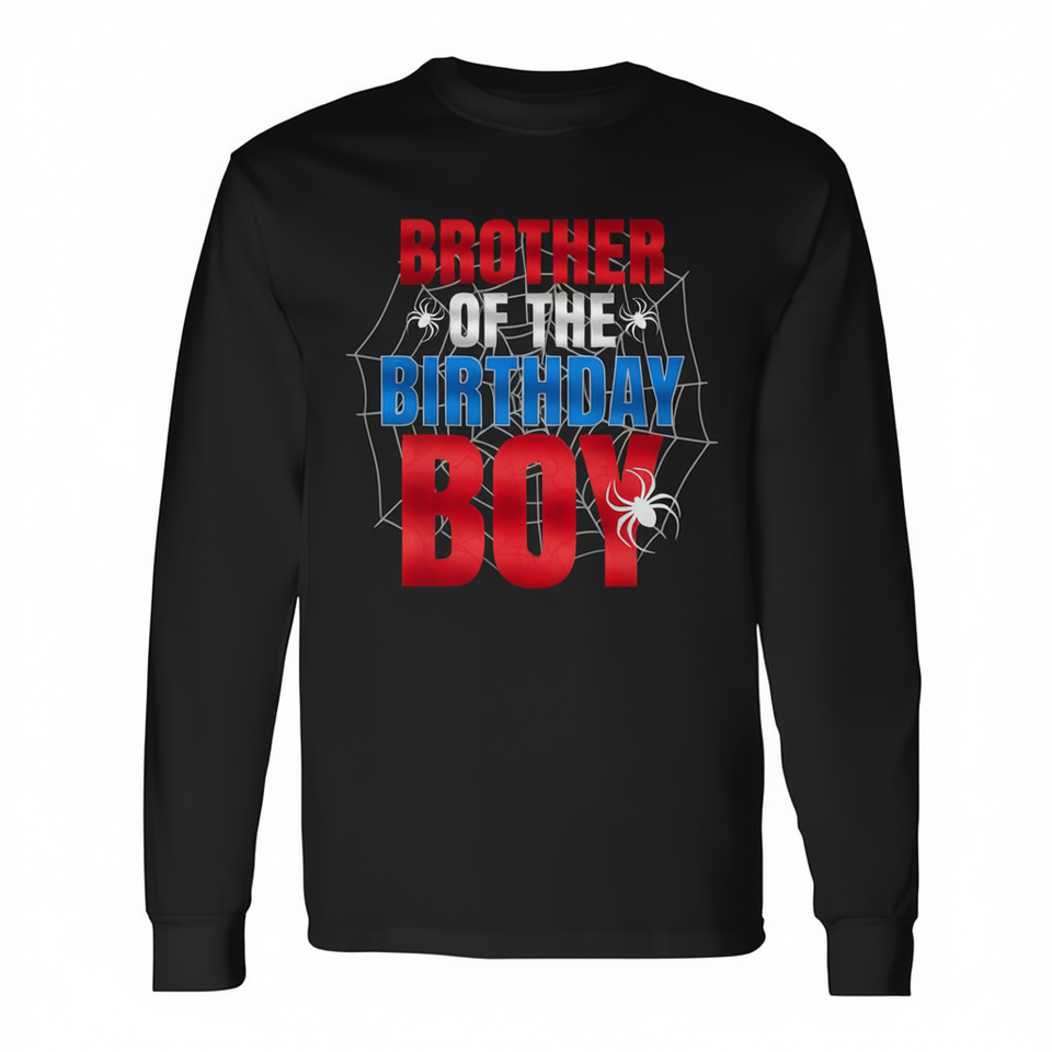 Maglietta a maniche lunghe con motivo a ragnatela per fratello del compleanno, coordinata per la famiglia