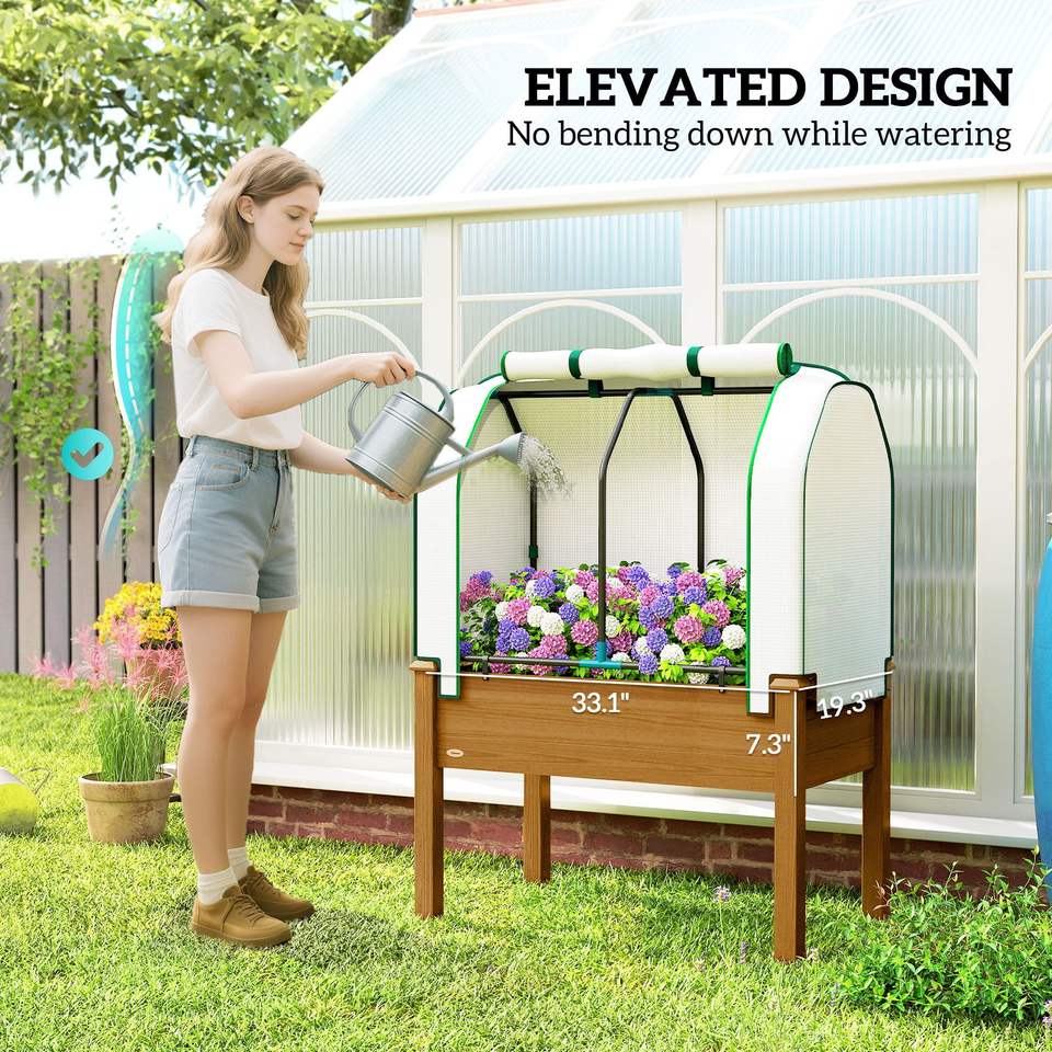 Fioriera rialzata marrone 35 x 22 x 47 pollici con copertura in PE per serra, per erbe aromatiche e verdure
