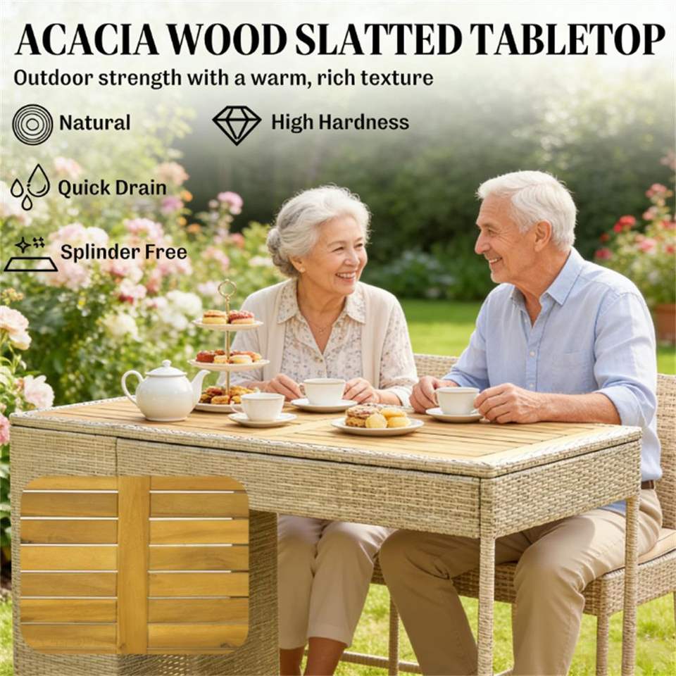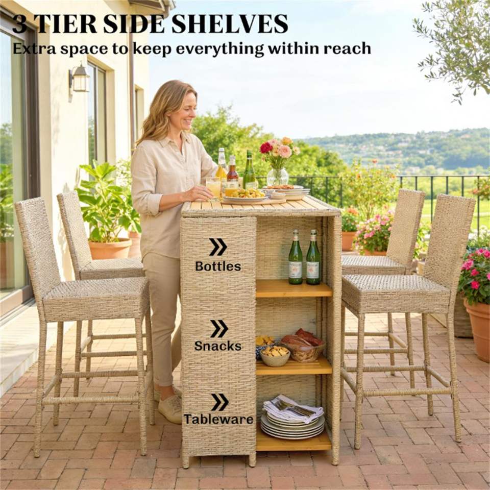 Set di Mobili da Esterno Marrone a 5 Pezzi con Bancone Bar, Include Tavoli e Sedie