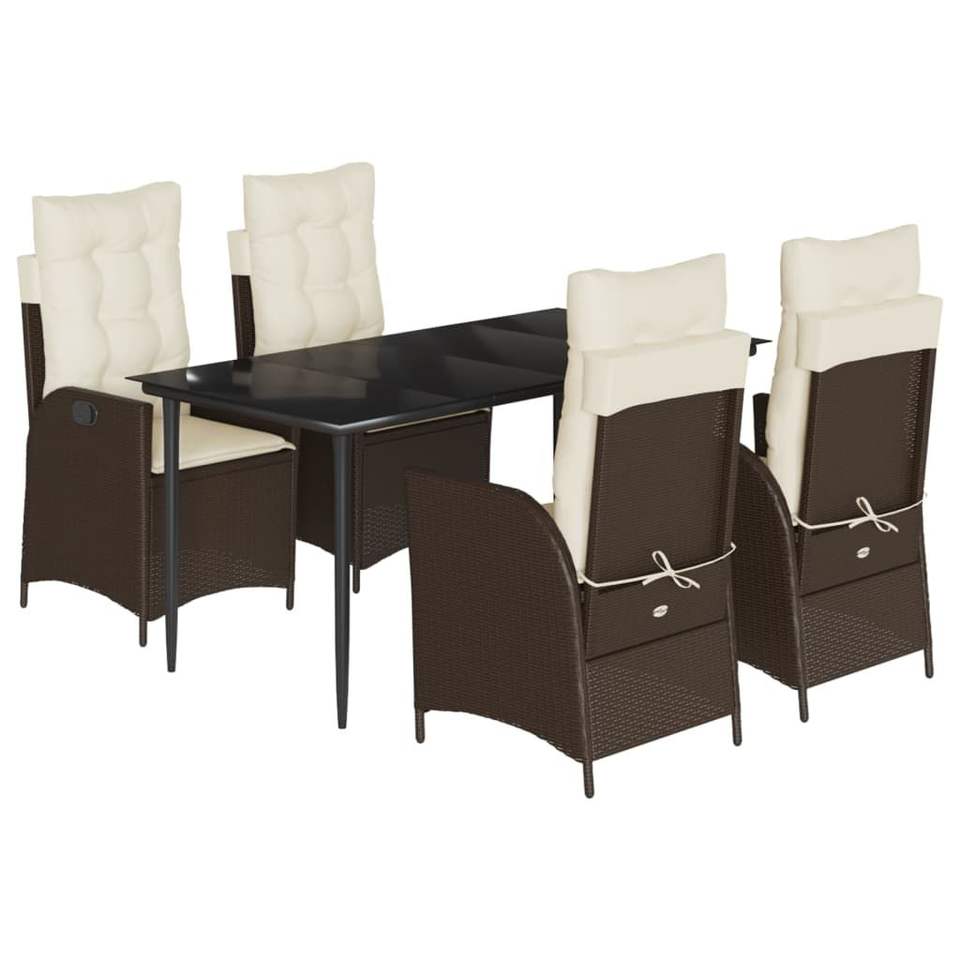 Set da Pranzo da Giardino Marrone Crema per 4 Persone, Mobili da Esterno in Rattan Resistenti alle Intemperie, Design Contemporaneo