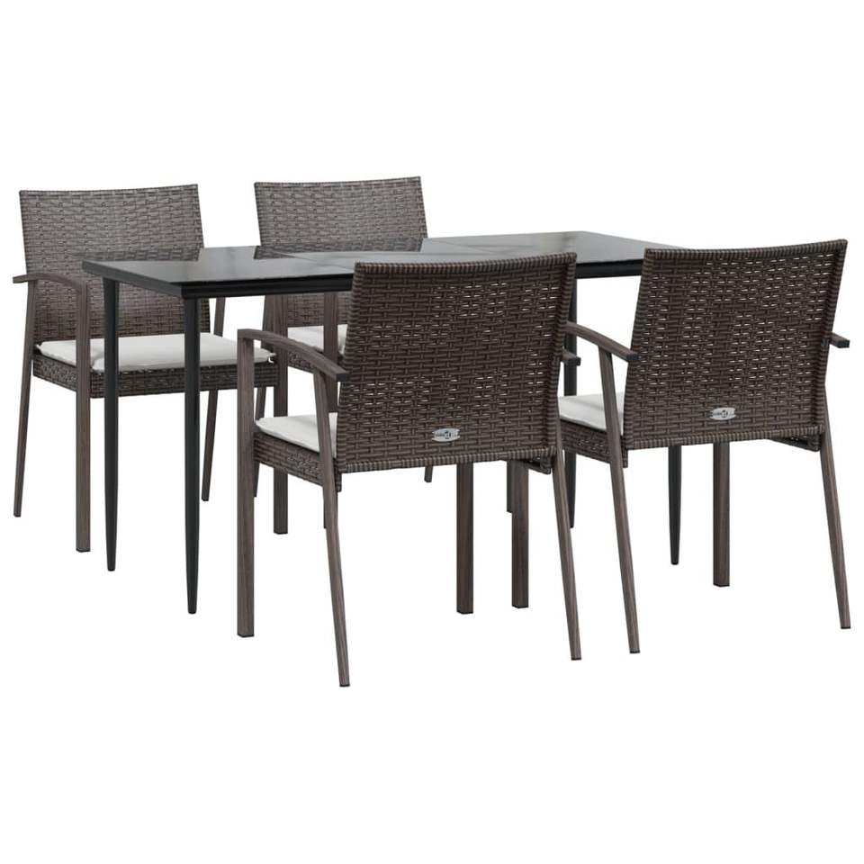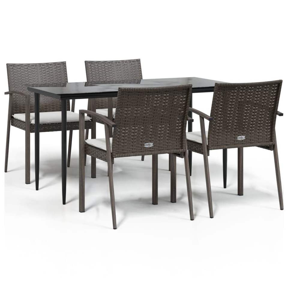 Set da Pranzo da Giardino Marrone per 4 Persone, Struttura in Metallo Resistente alle Intemperie, Arredamento da Esterno in Stile Contemporaneo