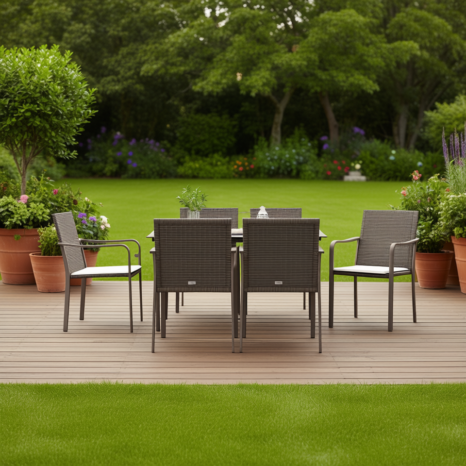 Set da Pranzo da Giardino Marrone per 4 Persone, Mobili da Esterno in Rattan, Design Contemporaneo con Telaio in Metallo Resistente alle Intemperie