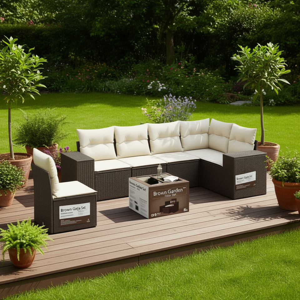 Brown Garden Sofa Set Outdoor Rattan Sectional With Cushions Contemporary Design Durable Furniture