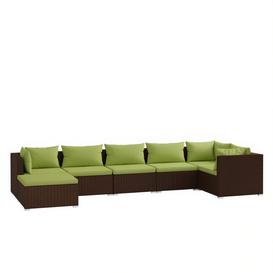 Set Lounge da Giardino in Vimini Marrone per 6 Persone, Arredamento da Esterno dal Design Contemporaneo, Set Divano da Patio Resistente alle Intemperie