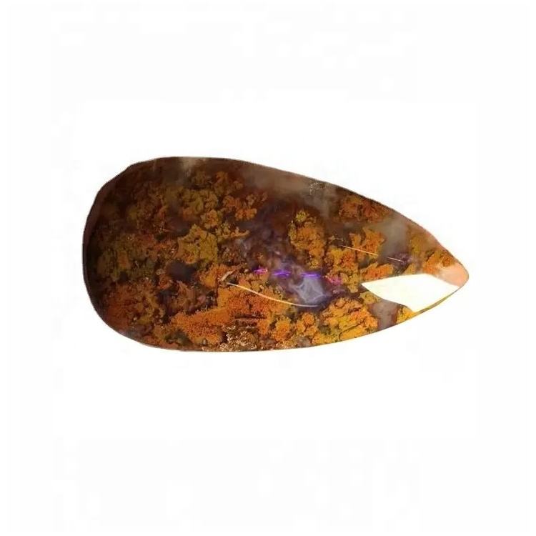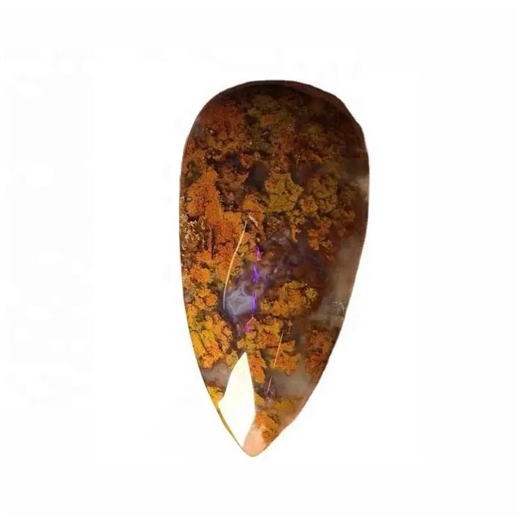 Cabochon di Agata Muschiata Marrone, Gemma Piatta Sfusa a Forma di Pera