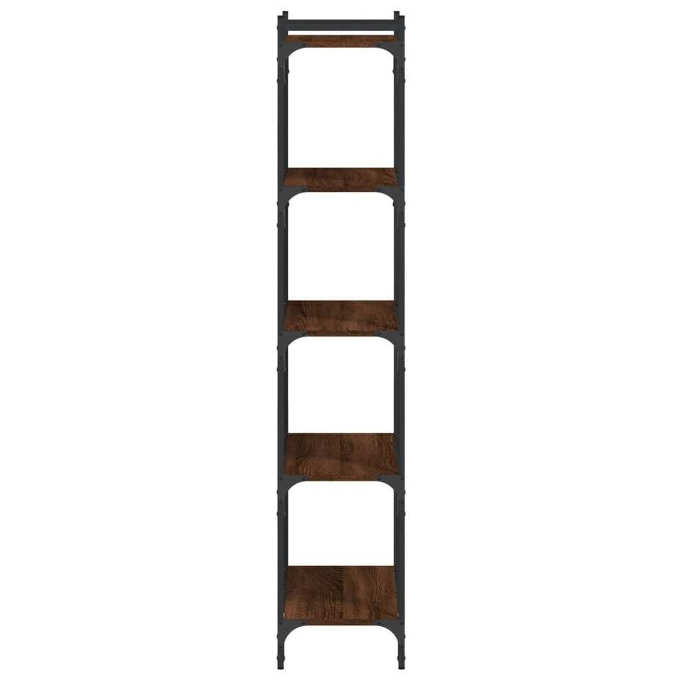 Libreria in legno ingegnerizzato color rovere marrone con piedini in metallo regolabili di medie dimensioni, nuovo design e aspetto elegante