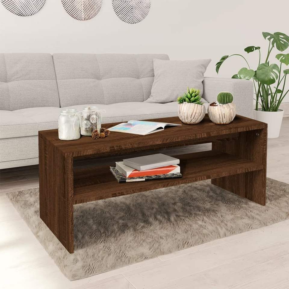 Tavolino da caffè in legno ingegnerizzato color rovere marrone 39,4x15,7x15,7 pollici