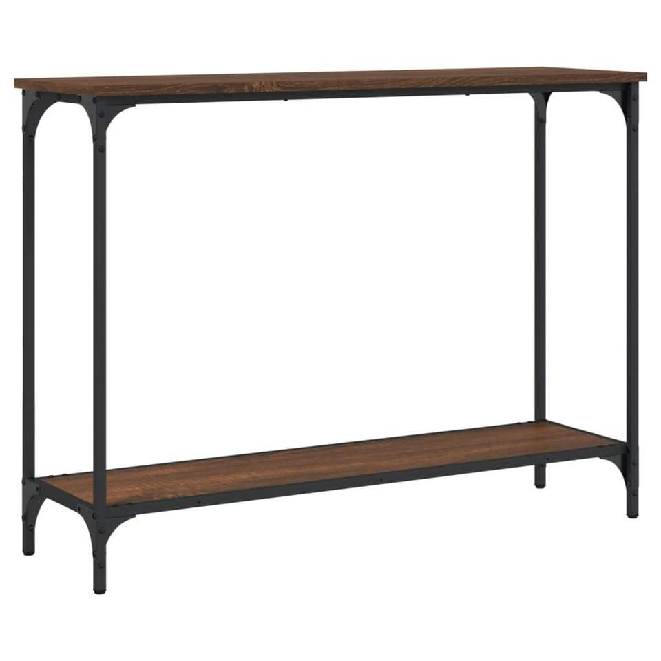 Brown Oak Engineered Wood Console Table with Metal Medium Size