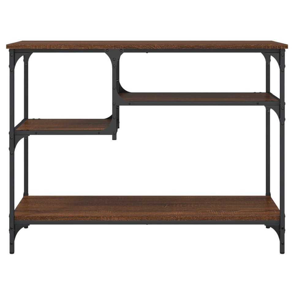 Brown Oak Engineered Wood Console Table with Metal Accents