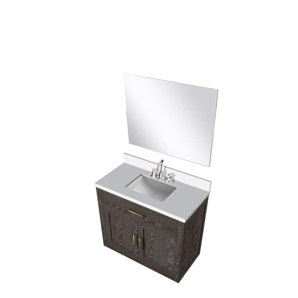 Marrone quercia singolo 36 In. W X 22 In. D vanità da bagno con piano di lavoro In marmo coltivato 34 In. Set di specchio e rubinetto