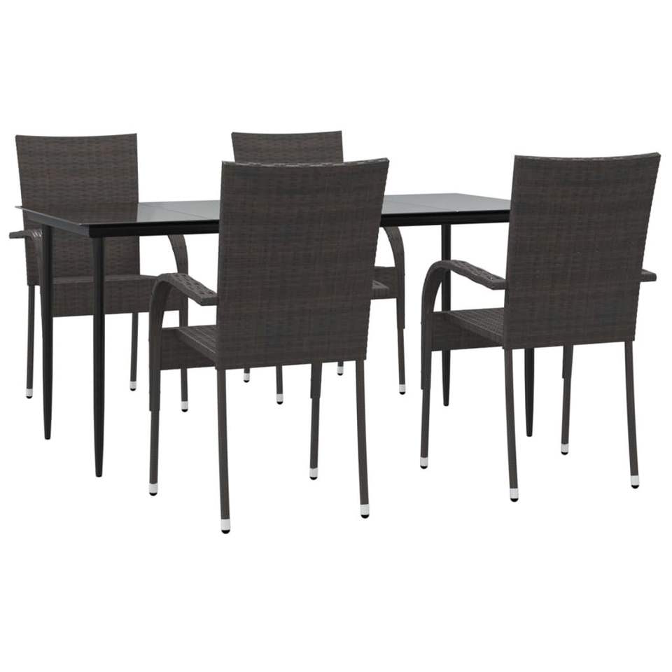 Set da Pranzo da Giardino in Rattan PE Marrone per 4 Persone, Struttura in Acciaio, Arredamento da Esterno Stile Contemporaneo Impilabile