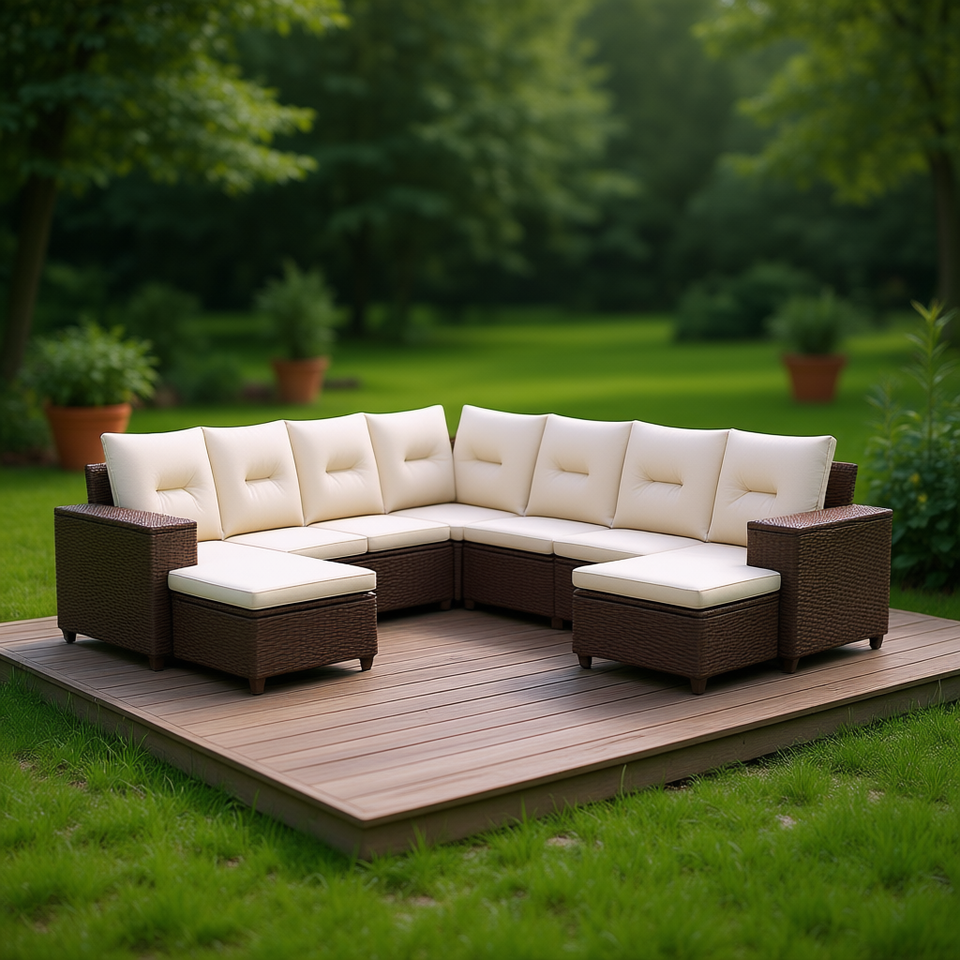 Set Divano da Giardino in Rattan PE Marrone con Piedini Regolabili, Arredamento da Esterno dal Design Contemporaneo, Cuscini in Schiuma ad Alta Densità