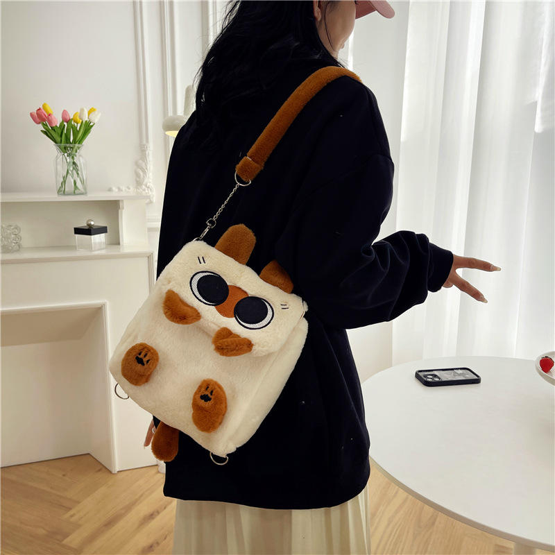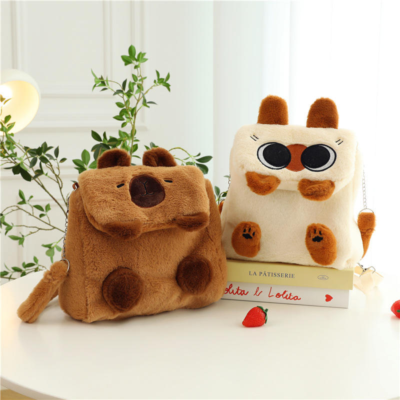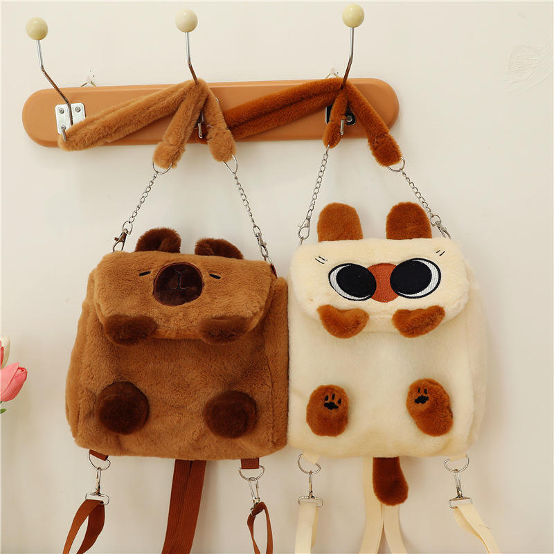 Marrone rosa capibara gatto peluche zaino cartone animato Kitt peluche tracolla borsa alla moda gattino gatto zaino molto morbido orso nero giocattolo