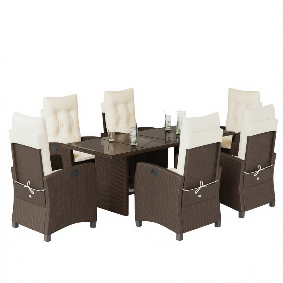 Set da Pranzo da Giardino in Polyrattan Marrone per 6 Persone con Schienale, Arredamento da Esterno Stile Contemporaneo