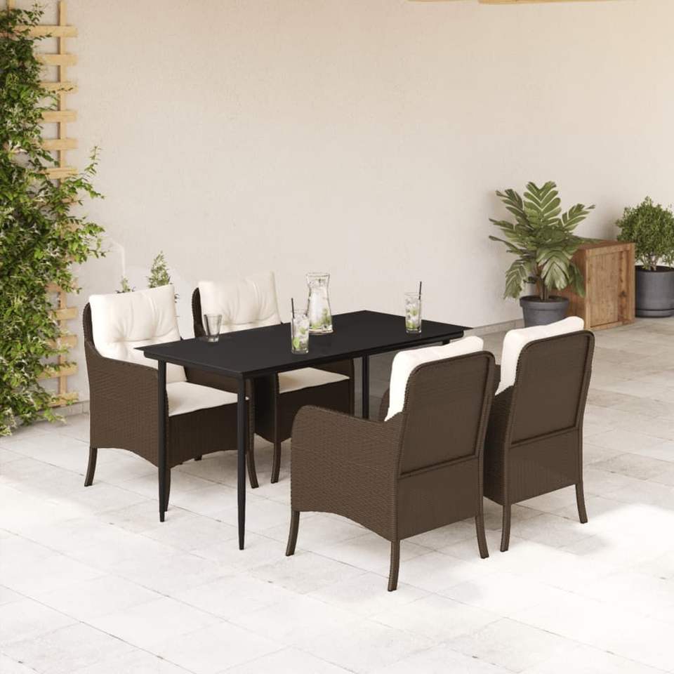 Set da Pranzo da Giardino in Rattan Marrone per 4 Persone, Resistente alle Intemperie, Arredamento da Esterno in Stile Contemporaneo