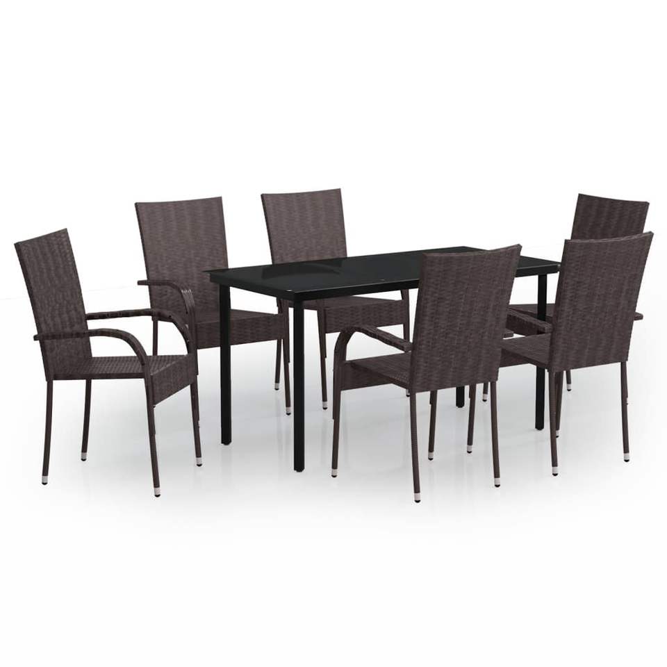 Set da Pranzo da Giardino in Rattan Marrone per 6 Persone, Struttura in Acciaio, Resistente alle Intemperie, Arredamento da Esterno in Stile Contemporaneo