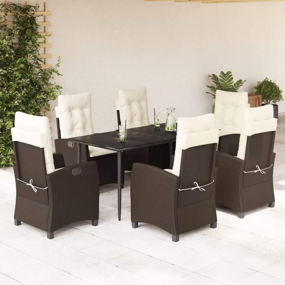 Set da Pranzo da Giardino in Rattan Marrone per 6 Persone, Resistente alle Intemperie, Design Contemporaneo