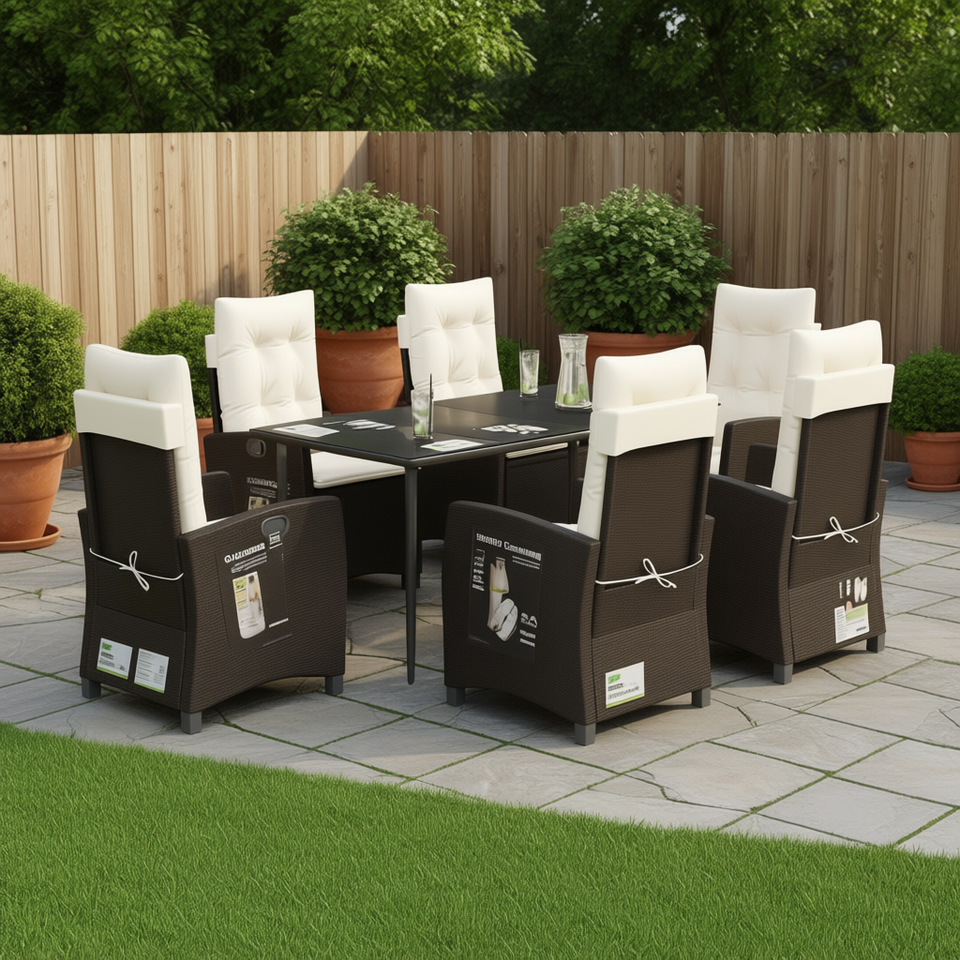 Set da Pranzo da Giardino in Rattan Marrone per 6 Persone, Resistente alle Intemperie, Arredamento da Esterno in Stile Contemporaneo