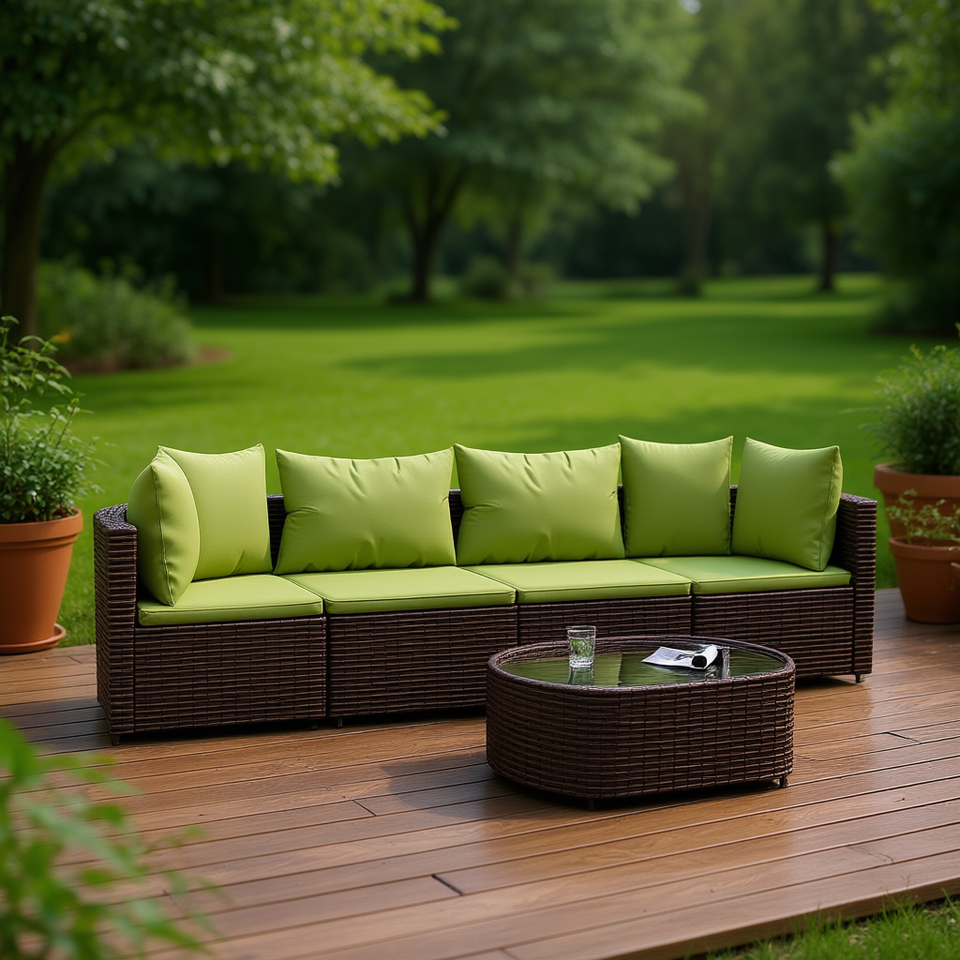 Set Divano da Giardino in Rattan Marrone, Arredamento da Esterno a 4 Posti, Design Contemporaneo per Spazi Living all'Aperto