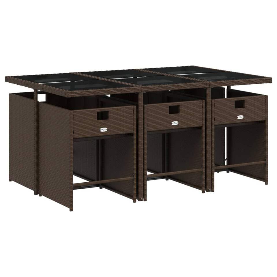 Set da Pranzo da Esterno in Rattan Marrone per 6 Persone, Resistente alle Intemperie, Arredamento da Giardino in Stile Contemporaneo