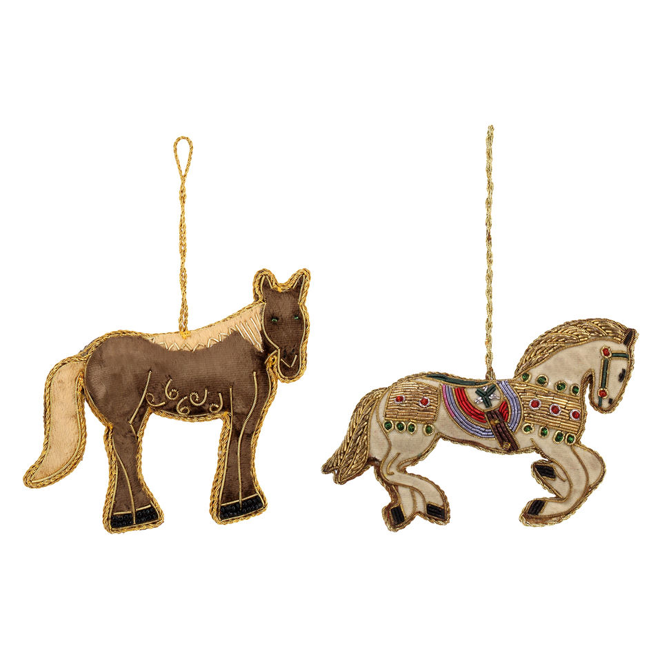 Brown Stallion Ornament Bonjour Namaste Hand Embroidered Matte Finish Equestrian Horse Christmas Decoration Eco-Friendly Custom