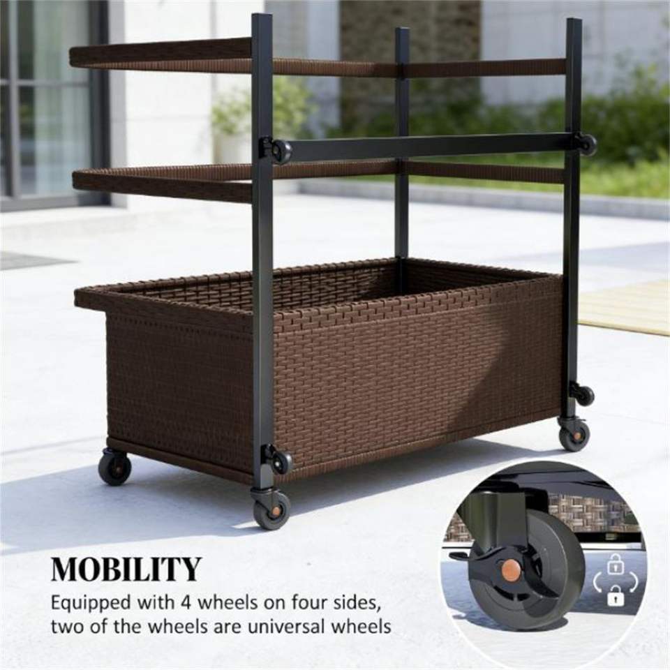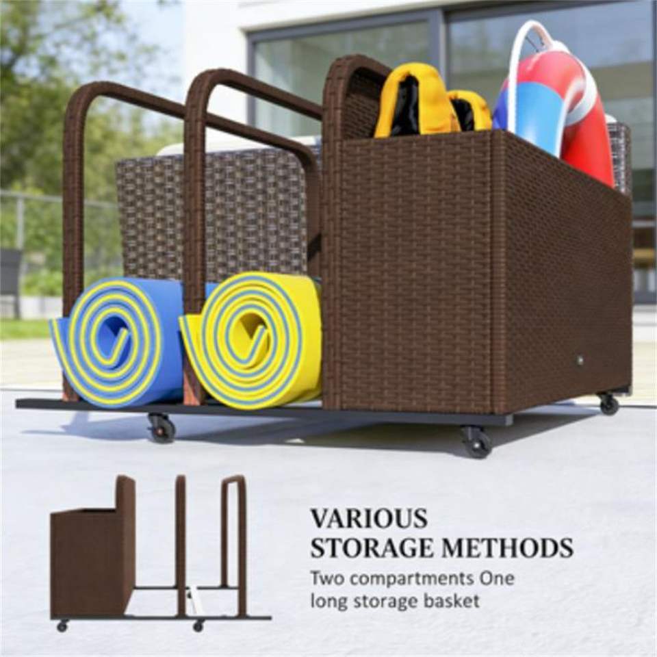 Cesto portaoggetti marrone per piscina, carrello portaoggetti pratico