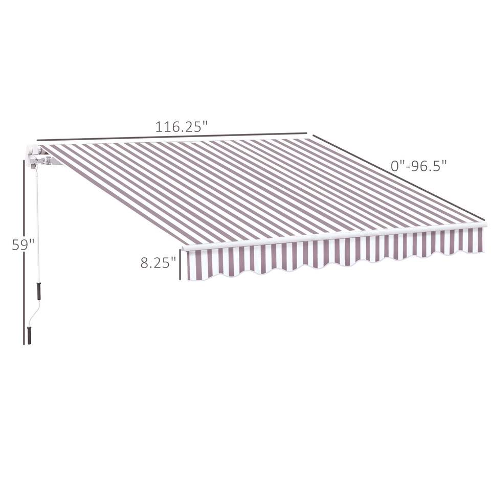 Tenda da Sole Retrattile Manuale a Righe Marroni 10 X 8 con Apertura a Manovella Facile, Protezione UV per Patio, Terrazza e Giardino