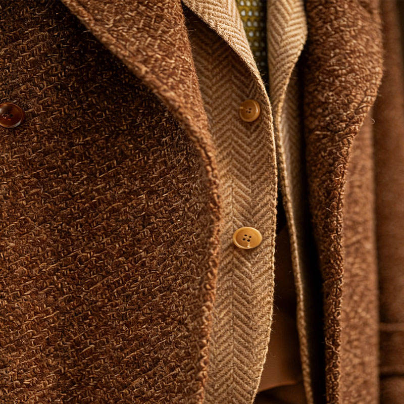 Cappotto da Uomo in 100% Lana Marrone con Texture Mista, Doppiopetto con Cintura, Tessuto di Lana Grezza Spazzolata, Stile Retrò da Gentiluomo