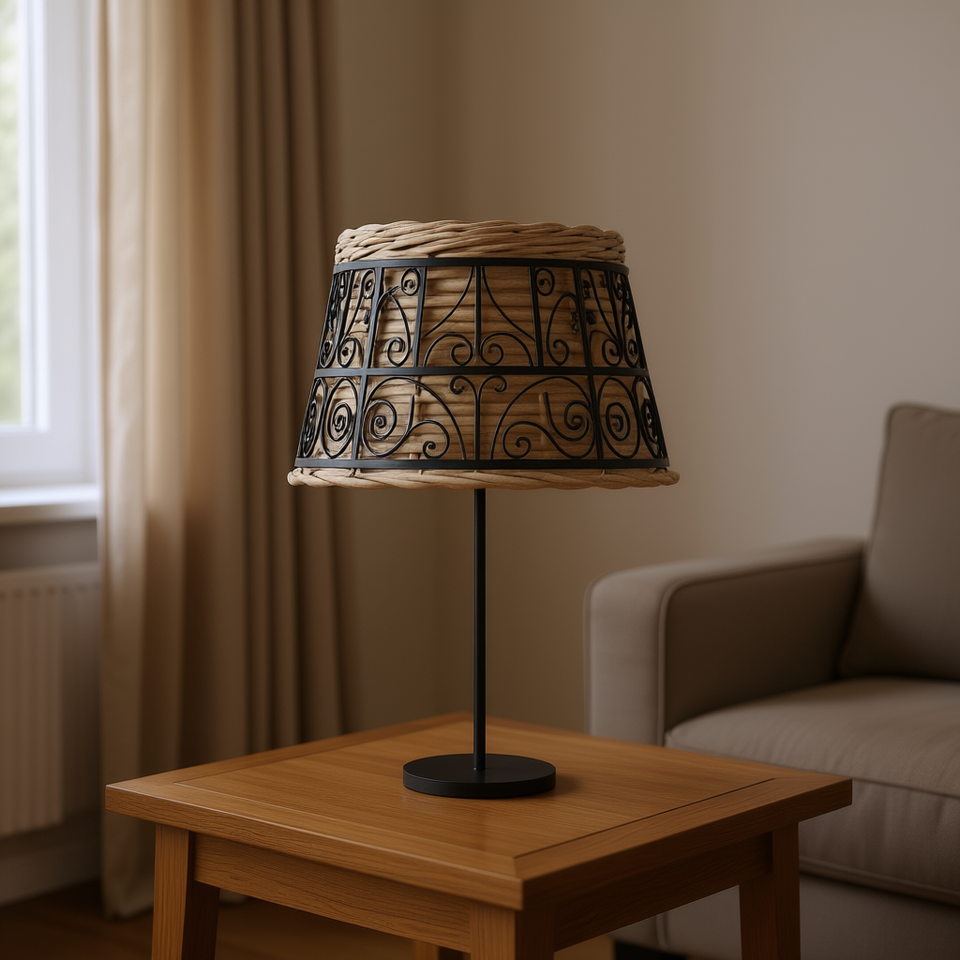 Brown Wicker Lamp Shade With Iron Decorative Inlays 15.0 X 9.1 Inch For Lamp Covers And Shades