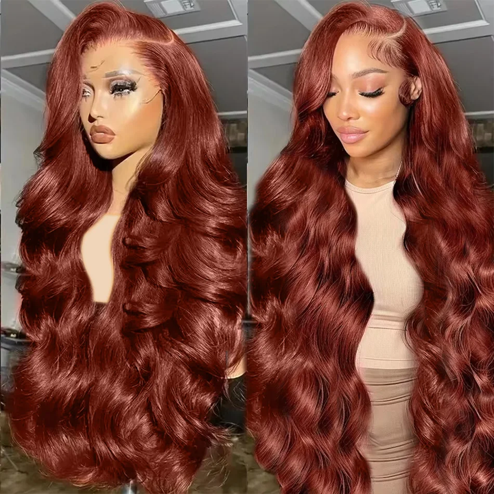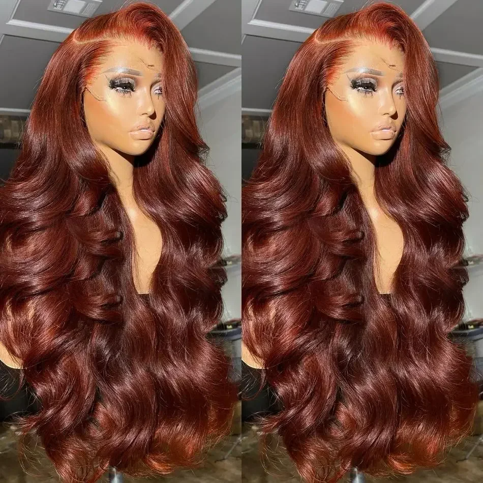 Parrucca in Capelli Umani Ondulati Marrone Rame Rossoacquamarina Biondo Castano con Rete HD 13x6 Frontale Senza Colla Pre-Piumata