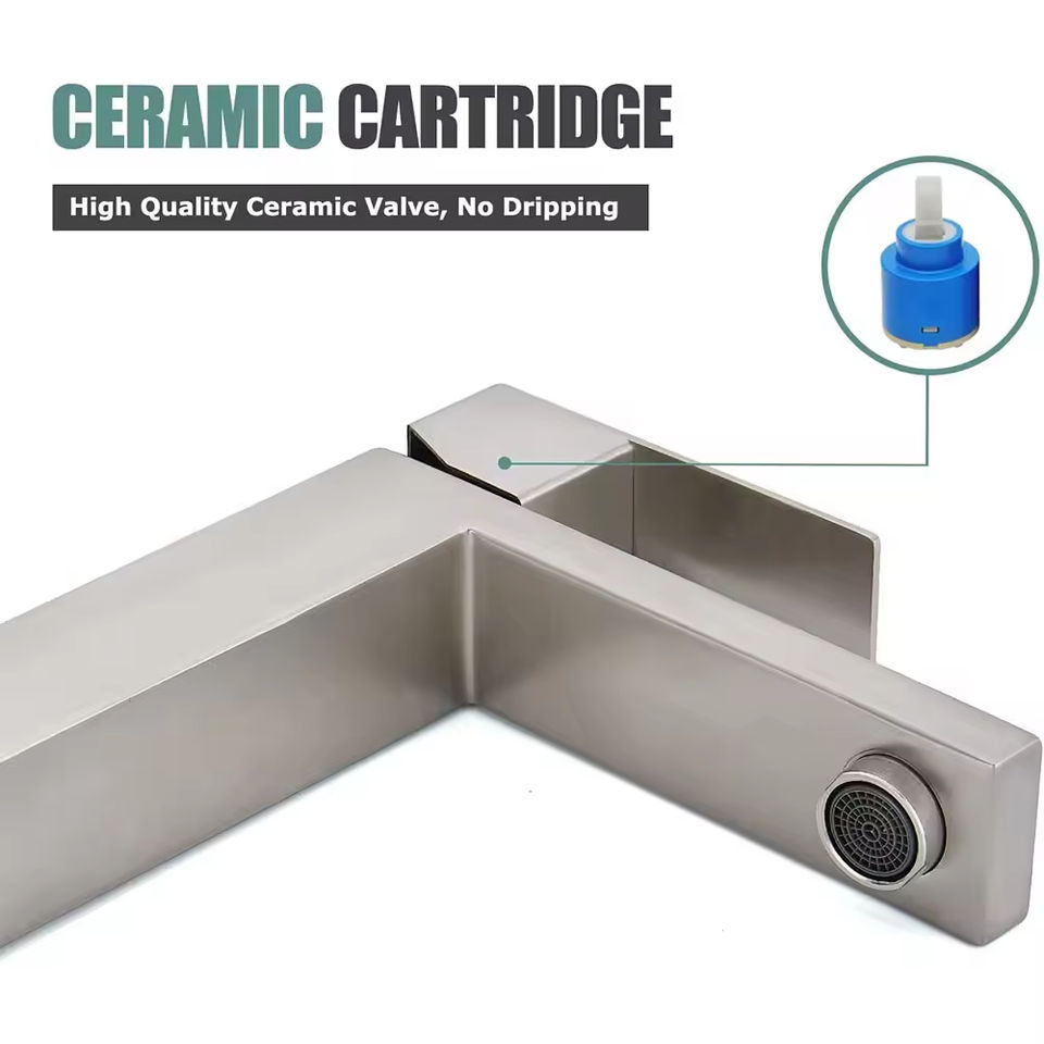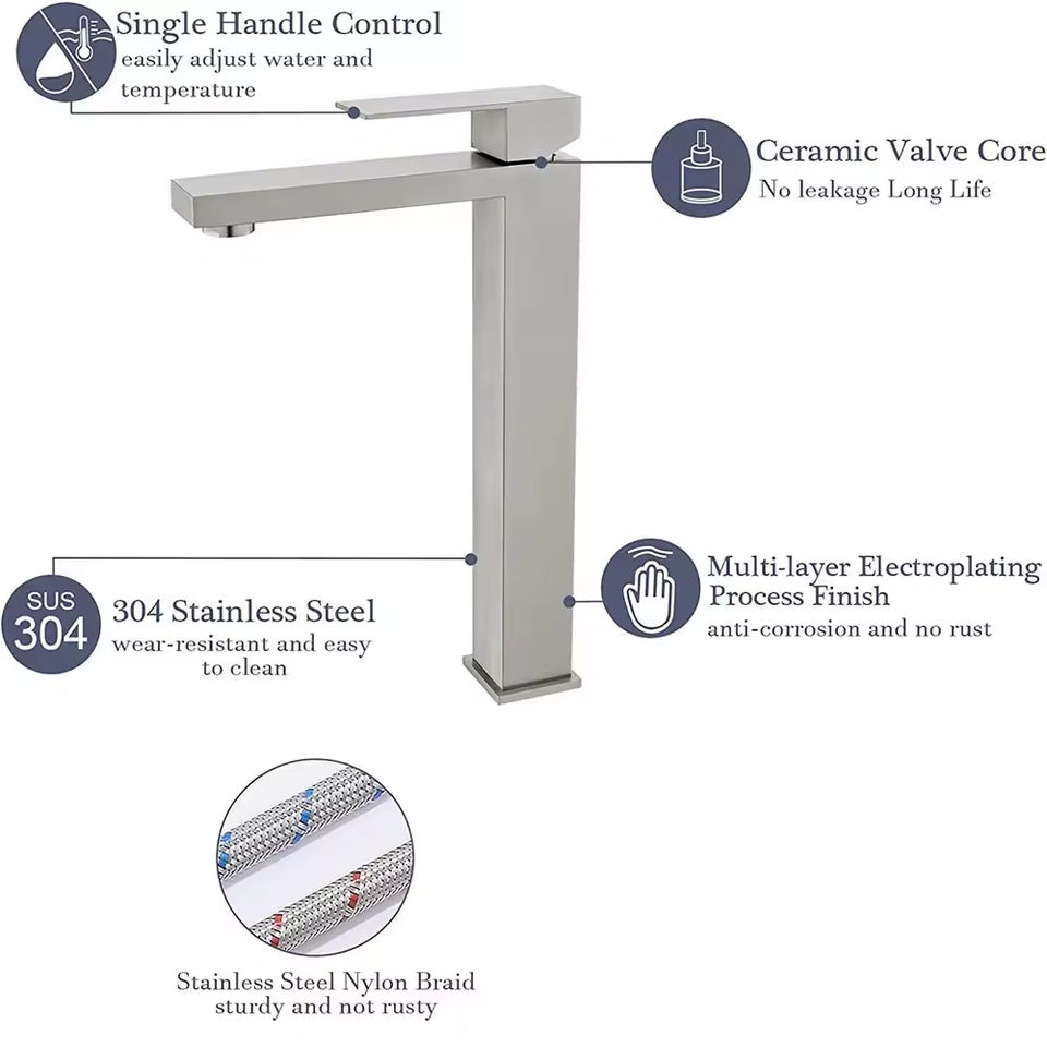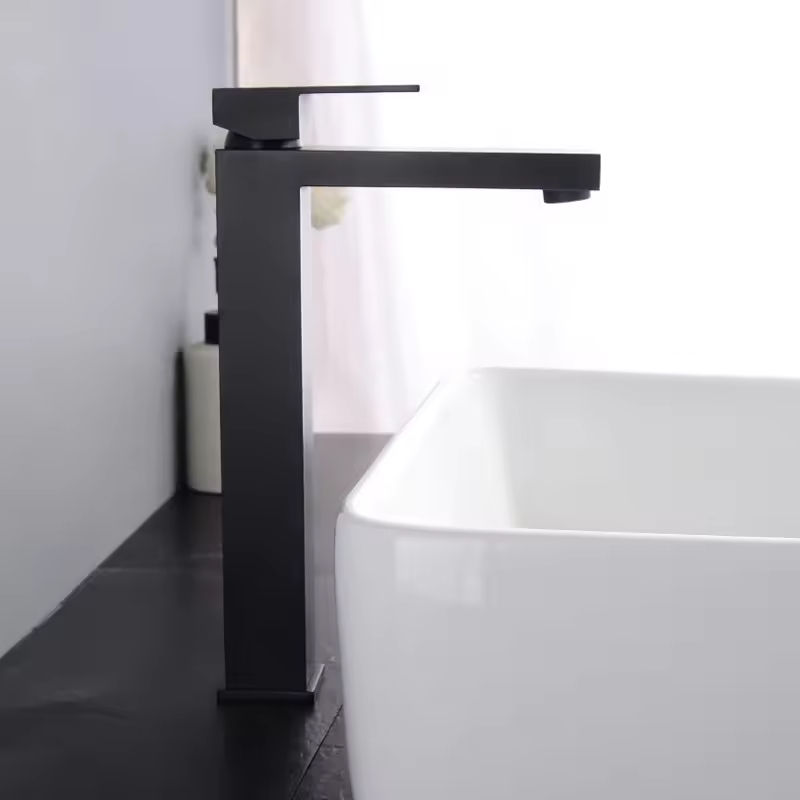 Brushed Black Gold Tall Square Faucet Deck Mount 304 Stainless Steel Basin Drawing Taps Cold Hot Mixer Washroom Sink Faucet