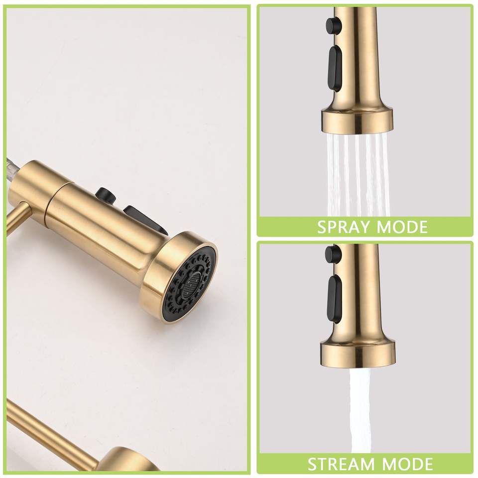 Rubinetto da cucina estraibile color oro spazzolato con doccetta a molla e design a molla integrata