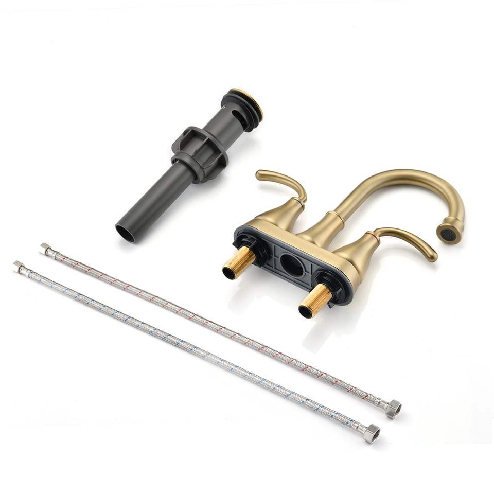 Rubinetto per Lavabo Bagno a 2 Maniglie in Oro Spazzolato con Scarico Pop-Up
