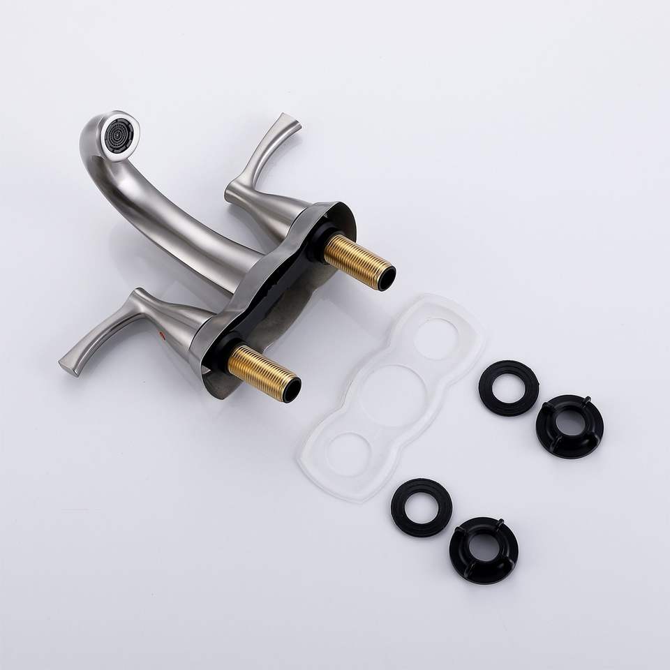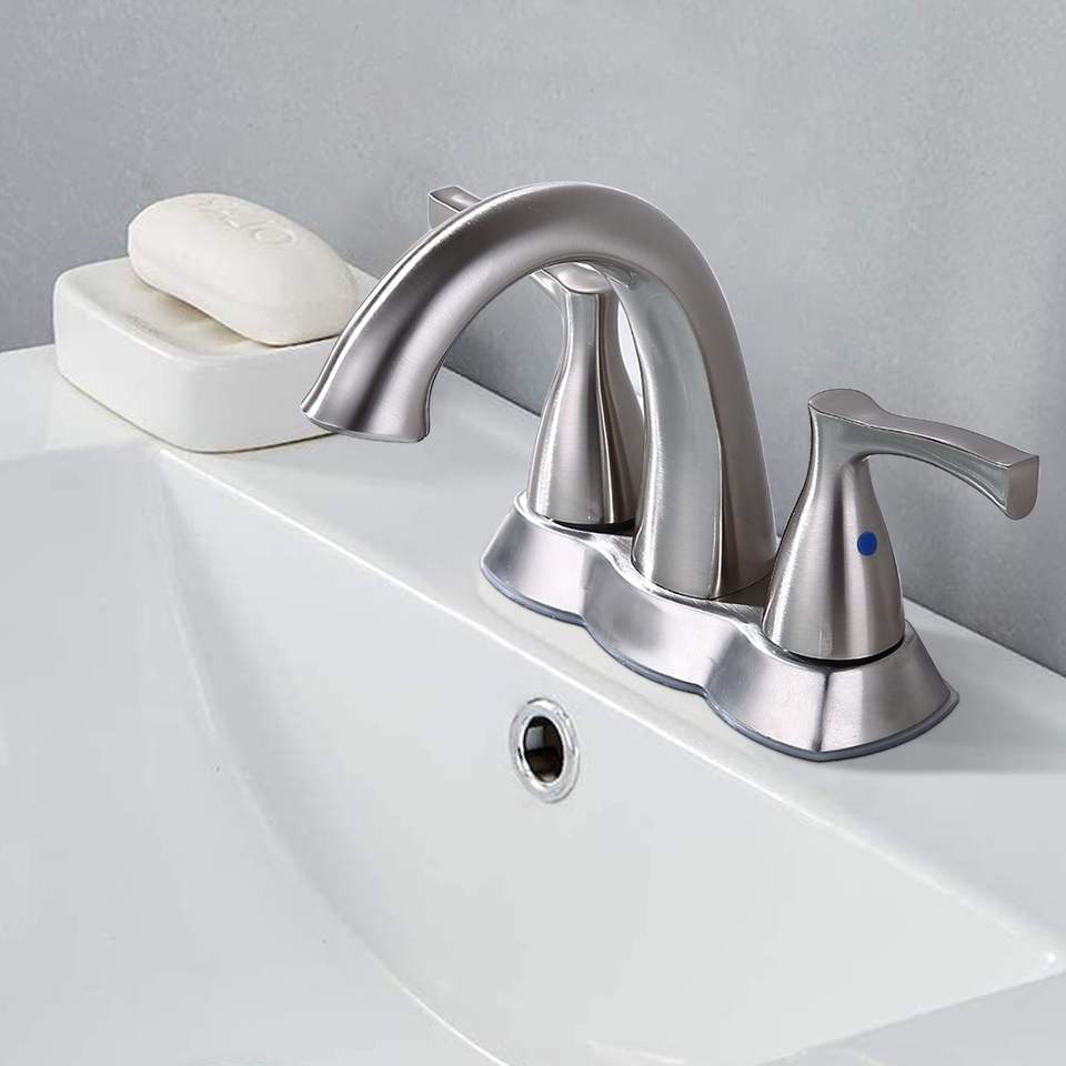 Rubinetto per Lavabo Bagno in Nichel Spazzolato da 4 Pollici con 2 Maniglie e Scarico a Scomparsa, Rubinetto per Vasca e Doccia