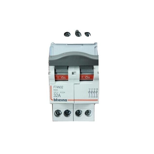 Interruttore Sezionatore Modulare Bticino F74N32 32A 4P 2 Moduli Interruttore di Carico 400V IP20 Plastica