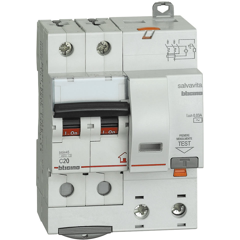 Interruttore Differenziale Bticino Rcbo 2P 20A Curva C 230V AC Montaggio Modulare