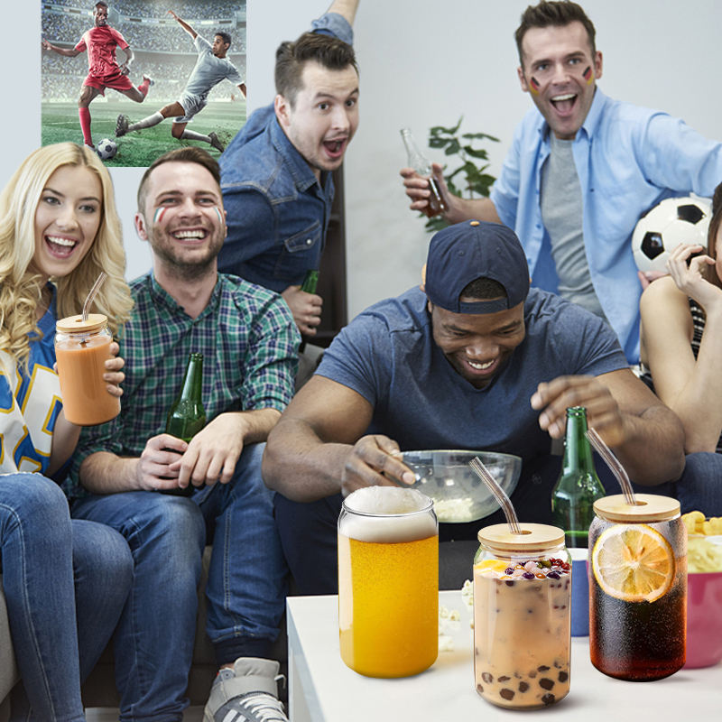 Beer Can Shaped Glass with Bamboo Lid and StrawTipo