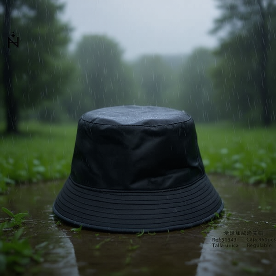Cappello a secchiello nero regolabile unisex per protezione dalla pioggia e uso all'aperto